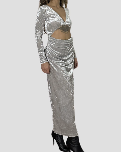 Vestido veludo molhado com abertura na barriga, comprimento longo/midi. Marca: ZaraCondição: Perfeito estado.Tamanho PMedidas: Comprimento 125cm, Busto 85-92cm, Cintura 67-74cm, Quadril 92-97cm